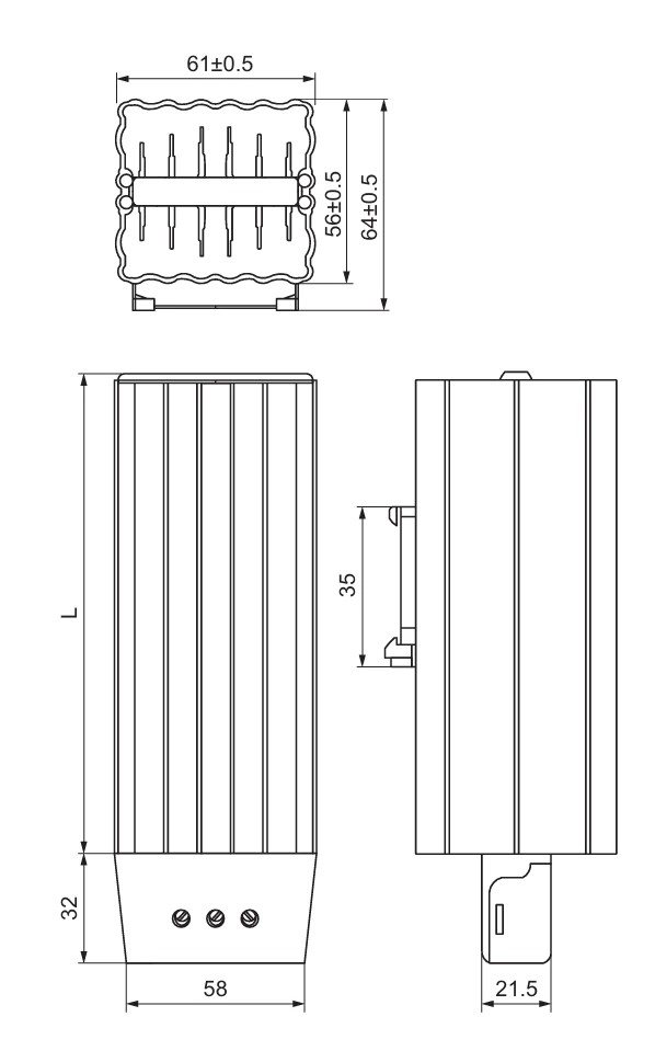 Il riscaldatore a semiconduttore PTC HG140 ha una struttura compatta. È facile da installare in vari tipi di armadi e non occupa molto spazio interno.