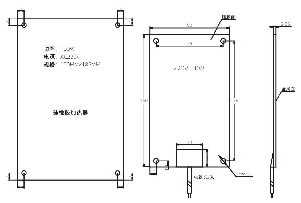 50 W 150mm 90 mm 2,8 mm 136 76